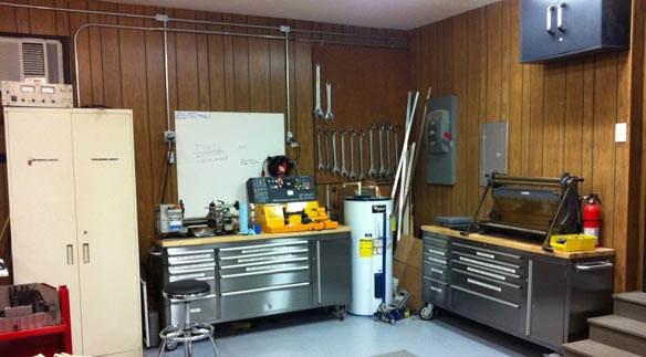 The larger industrial area of the Man Cave complex houses the heavy-duty drilling, lathing and welding equipment, as well as supplies for projects.